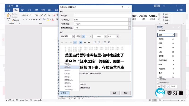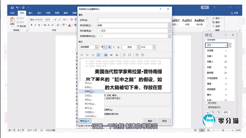 3.您可以使用相同的步骤来设置诸如边框、制表位等选项。点击确定返回文档,选择字段,点击刚刚设置的样式,就可以看到样式效果了。
