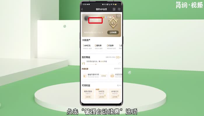 3.进入我的vip会员页面后,点击“管理自动续费”选项;
