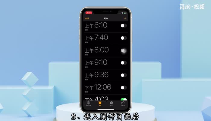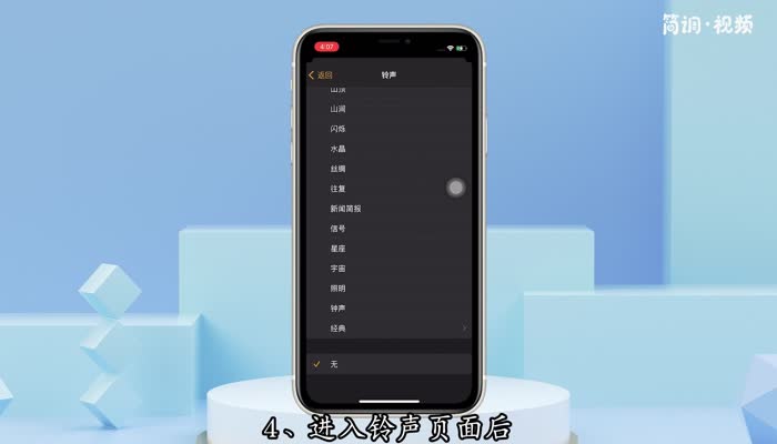 苹果关掉静音,闹钟响了。如果想让闹钟没有声音响起,可以将铃声设置为“无”。具体操作步骤如下: