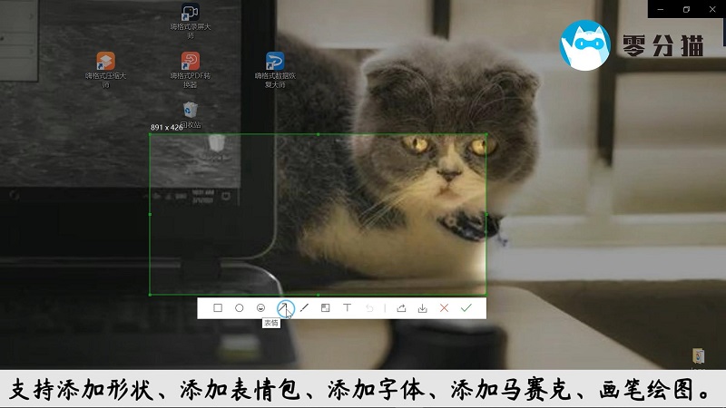 然后按快捷键“Alt A”来截图。支持添加形状,表情,字体,马赛克和画笔绘图。