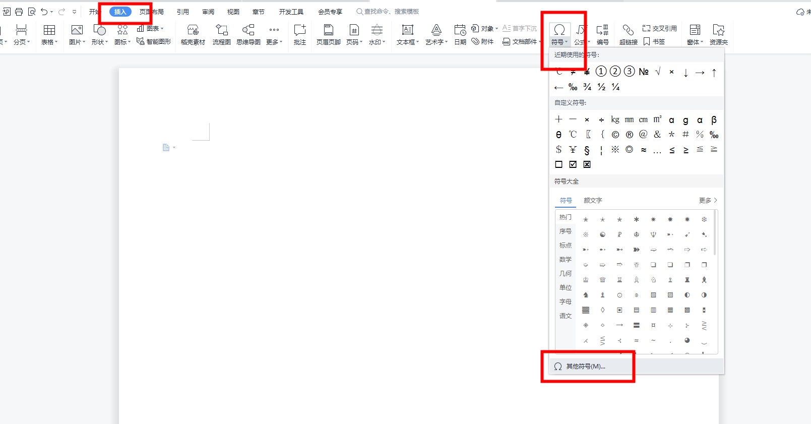 符号可以在符号中找到。以在WPS11.1.0.11045的Word文档中键入符号为例。它分为以下四个步骤: