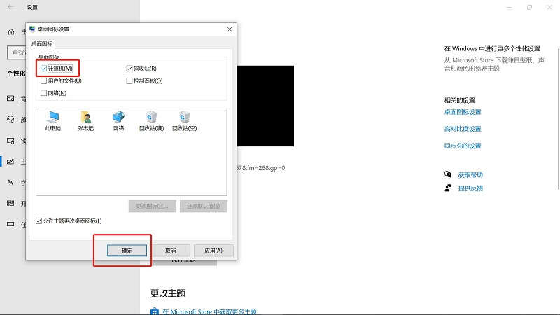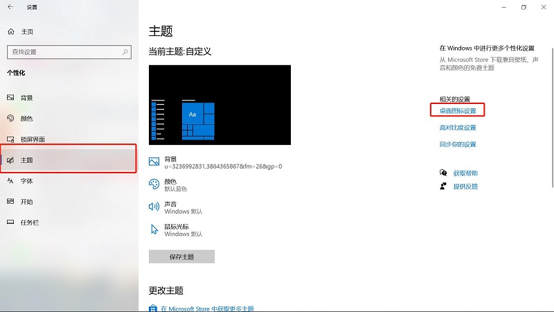 2.在弹出的设置页面中,点击左侧菜单栏中的“主题”,在右侧找到并点击“桌面图标设置”;
