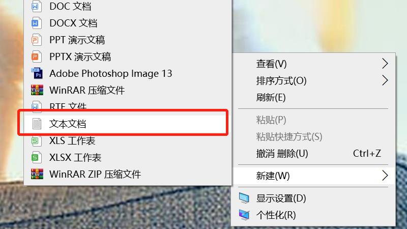 1.首先,右击桌面空白处,将光标移动到“新建”,选择弹出的“文本文档”。在这里,创建一个新的记事本。
