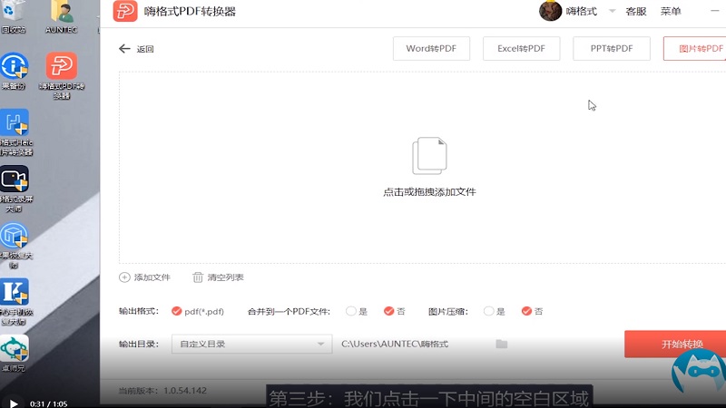 3.选择图片为PDF。我们点击中间的空白区域来添加要转换的图片。