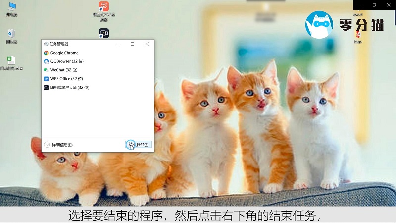 选择要结束的程序,然后点击右下角的结束任务,结束这个正在运行的程序,也就是强制关闭。