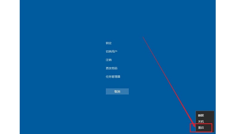 1.电脑重启快捷键“Ctrl Alt Delete”,可以直接选择右下角“关机”按钮旁边的小箭头,可以看到“重启”选项;