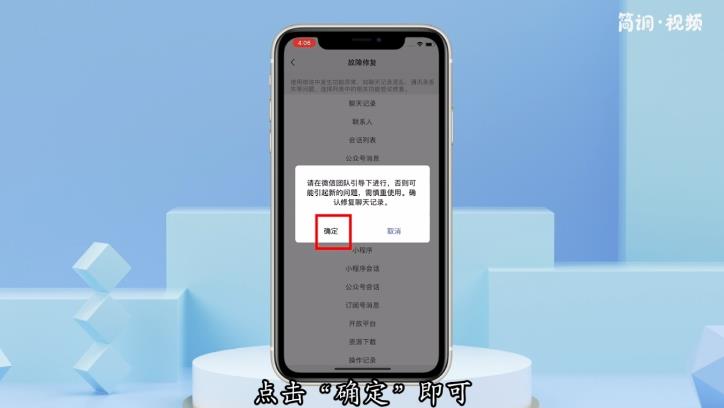 如果苹果手机删除的聊天记录没有备份,就无法恢复。但如果是异常情况导致聊天记录丢失,可以在微信修复工具页面进行修复。具体操作步骤如下:
