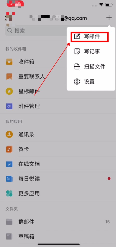 然后点击第一个“写邮件”。