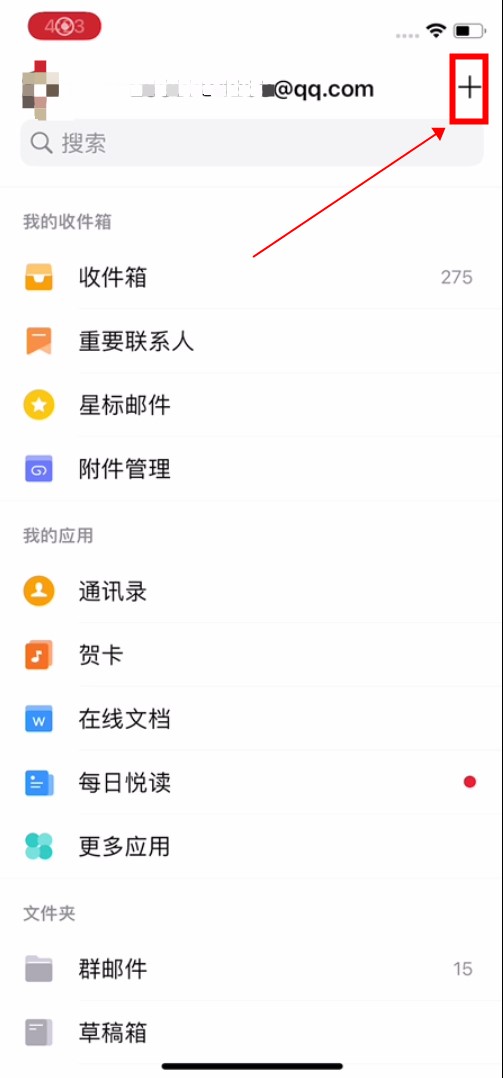 打开手机里的QQ邮箱,输入自己的邮箱,点击上面的" "。