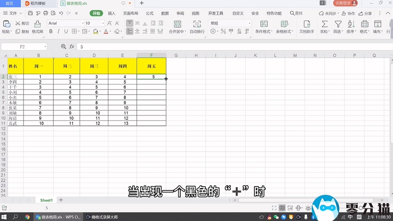 当一个黑叉出现时,向下拖动鼠标,填充完成。