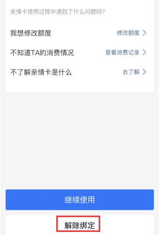 单击弹出窗口中的“解除绑定家庭卡”选项。