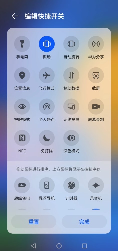 在编辑快捷开关界面,点击下面的“重置”。
