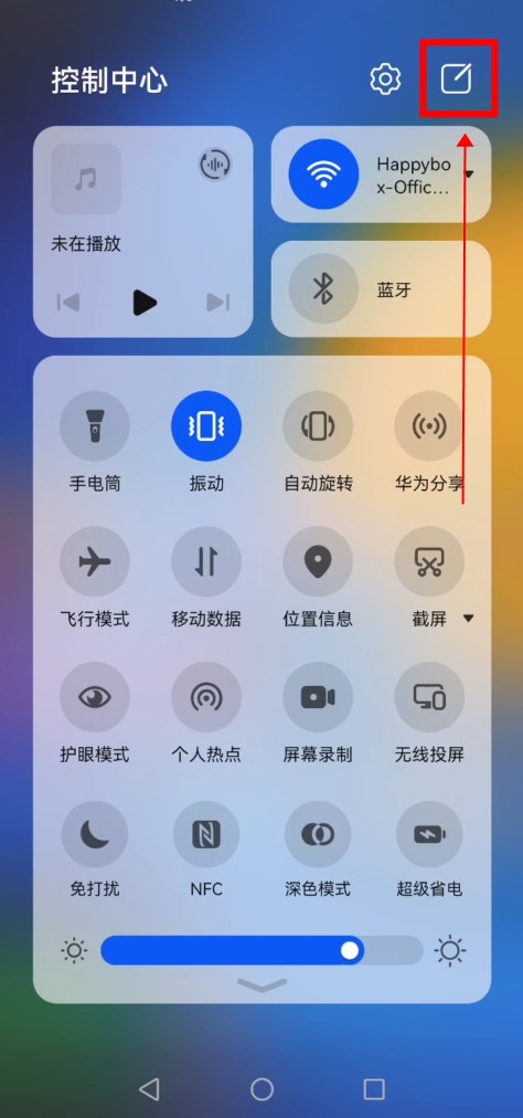 打开手机,向下滑动桌面打开控制中心,点击右上角的“自定义”按钮。