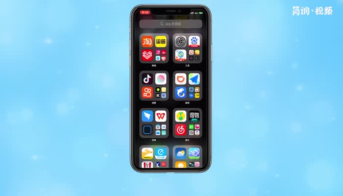 1.向左滑动苹果手机屏幕,直到打开App资源库页面;