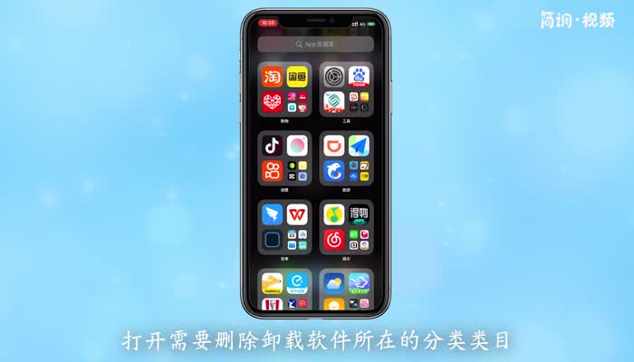 要卸载苹果要从屏幕中移除的app,可以进入App资源库页面,长按软件进行删除。具体操作流程如下: