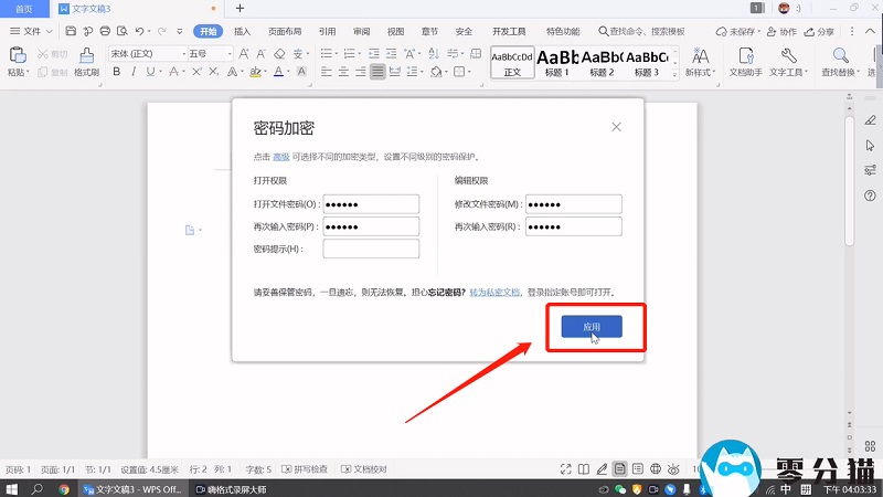 然后在弹出的窗口中输入打开密码和编辑密码。