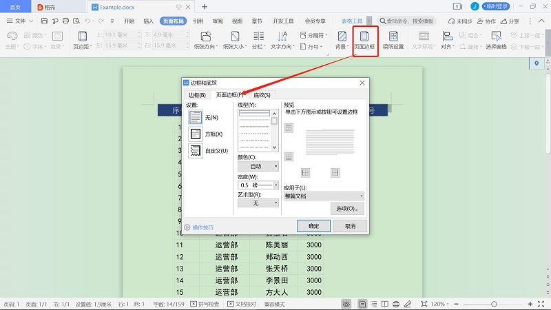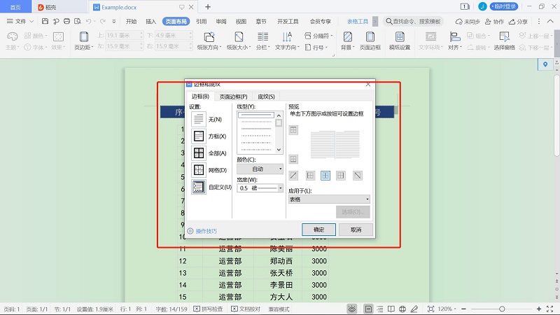 2.在“边框”中,您可以设置元素边框,并将其应用于文档中的段落、单词或表格。