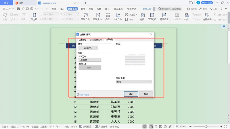 4.在“底纹”中,您可以设置背景颜色和样式。