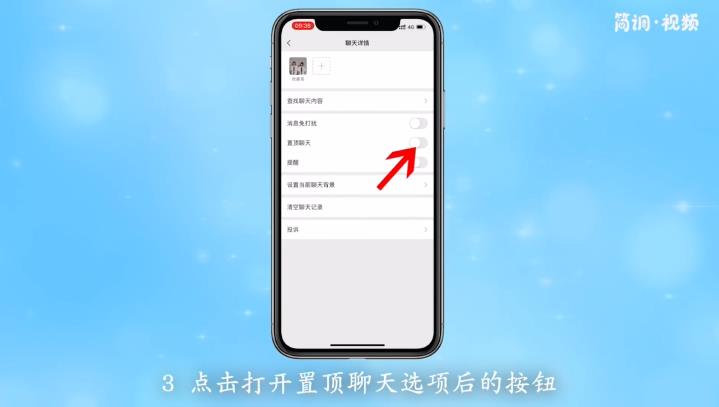 3.打开“置顶聊天”选项后点击按钮,返回页面时可以看到对话框已经置顶;