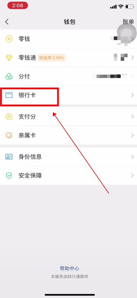 进入微信钱包,点击“银行卡”选项。