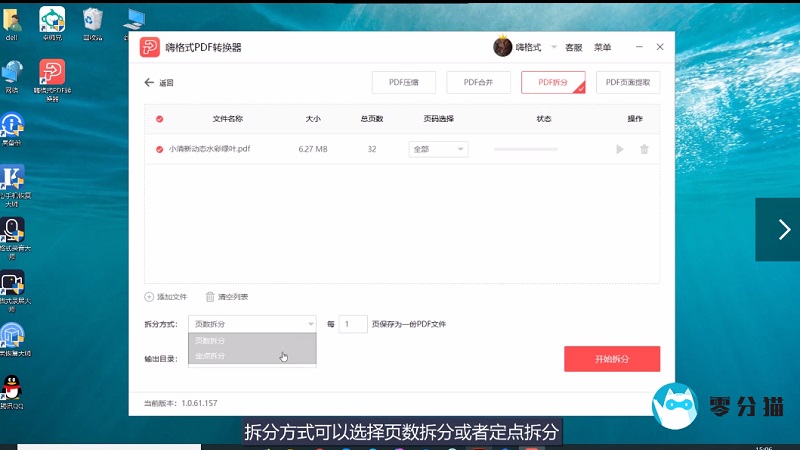 打开PDF converter,在主界面选择PDF拆分,点击中间空白区域,添加要拆分的PDF文件,设置拆分模式,点击开始拆分。