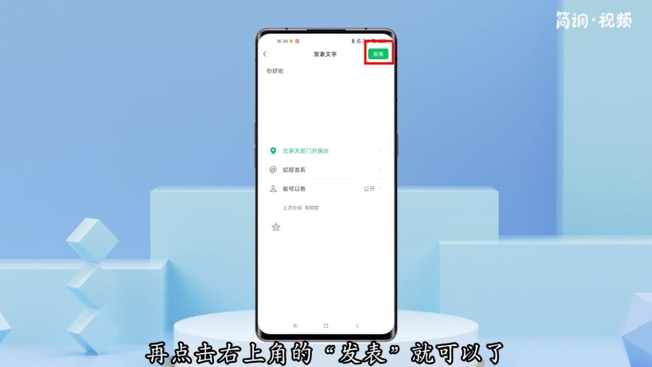 2.在朋友圈界面,点击相机图标进入编辑界面,编辑一个朋友圈;
