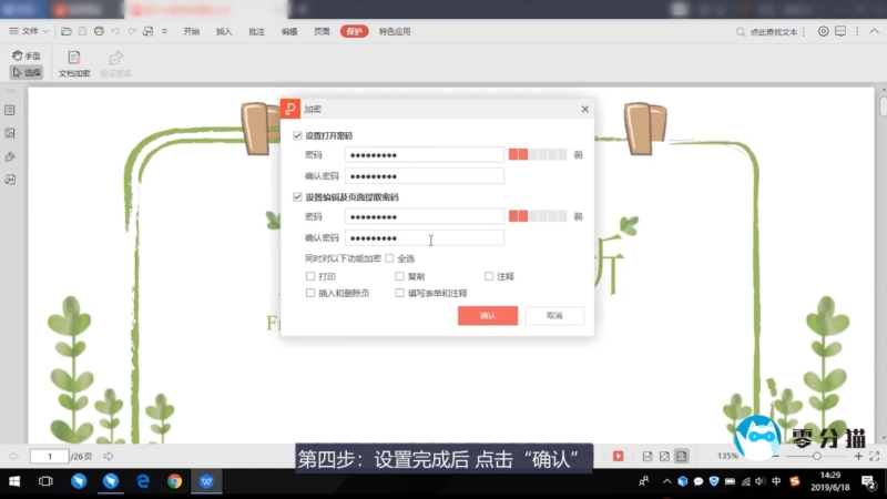 第四步:设置完成后,点击“确认”,我们的PDF文件就加密成功了。