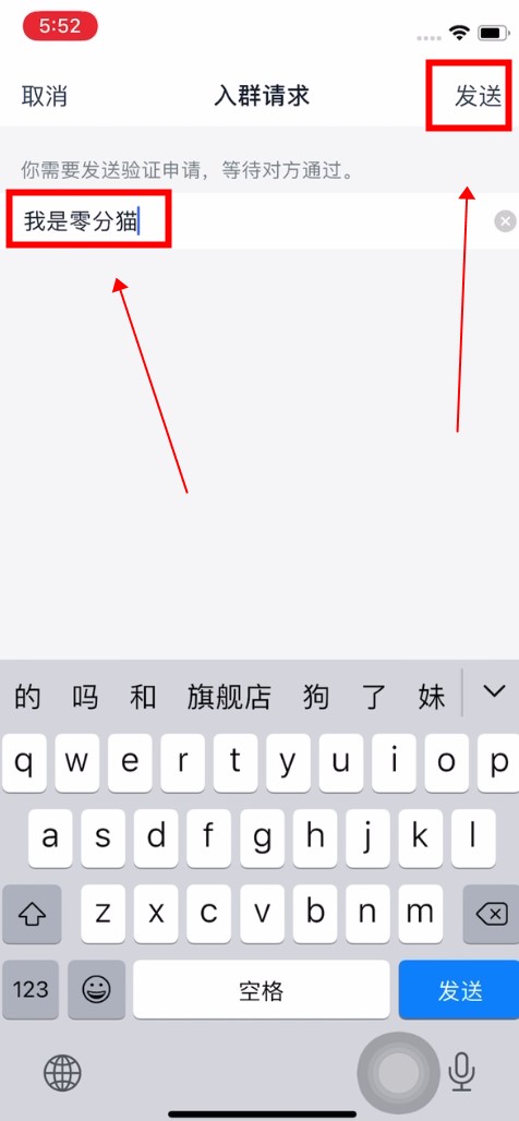 输入申请,点击发送。