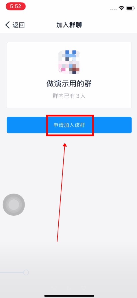 在群聊界面,点击“申请加入本群”。