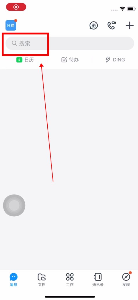 首先打开手机钉钉,点击上面的搜索。