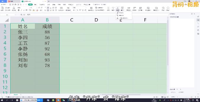 3.在弹出的列表中,点击“升序”或“降序”可以快速排序。