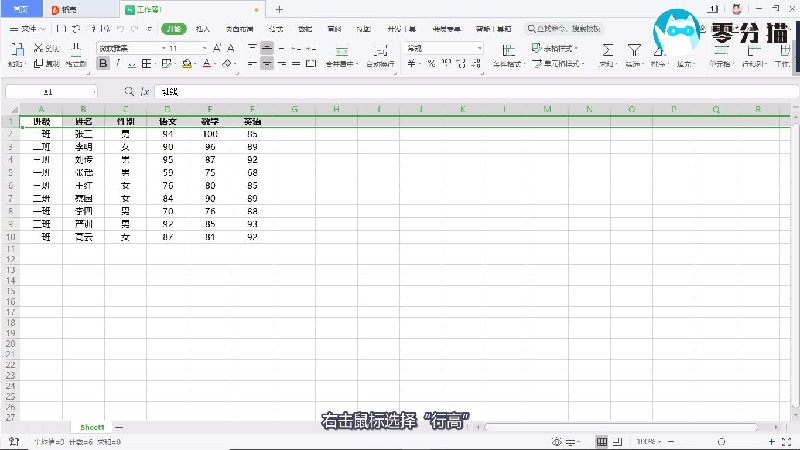 1.以下面的Excel表格为例。首先,选择要设置的行,单击鼠标右键,选择行高。