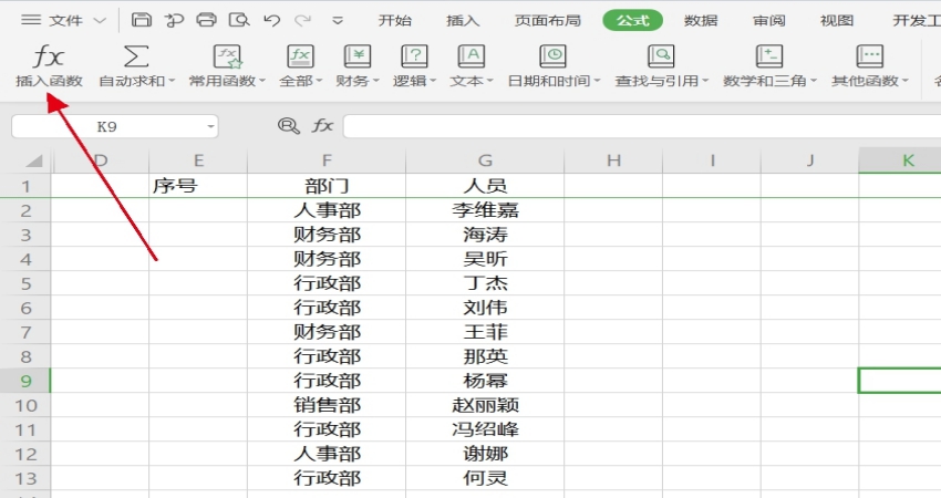 1.点击Excel表格栏上的“公式”,找到“插入函数”选项。