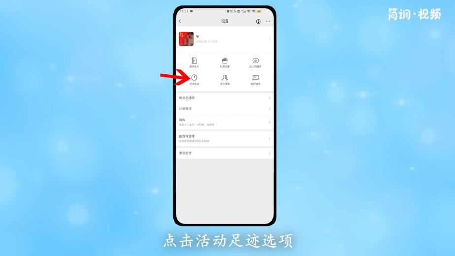 4.进入设置页面后,点击“活动足迹”选项,即可查看最近访问过的活动。