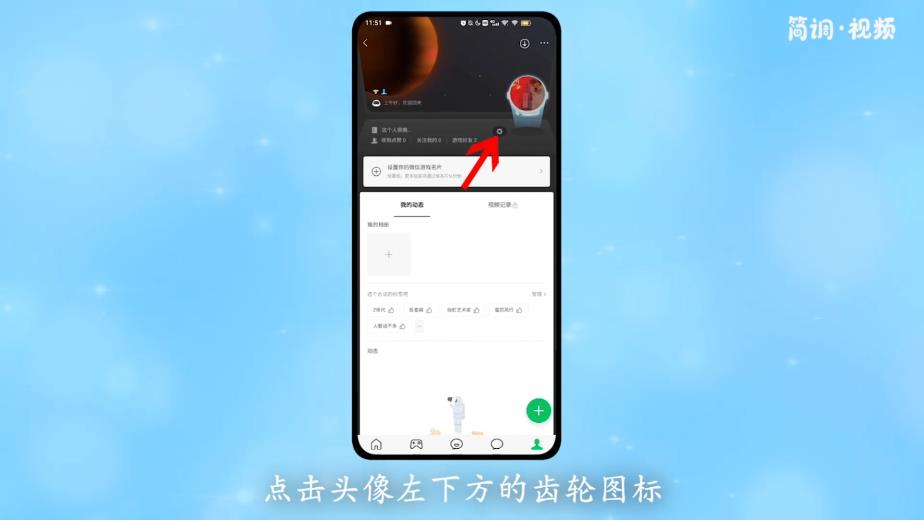 3.进入个人页面后,点击头像左下方的齿轮图标,进入设置页面;