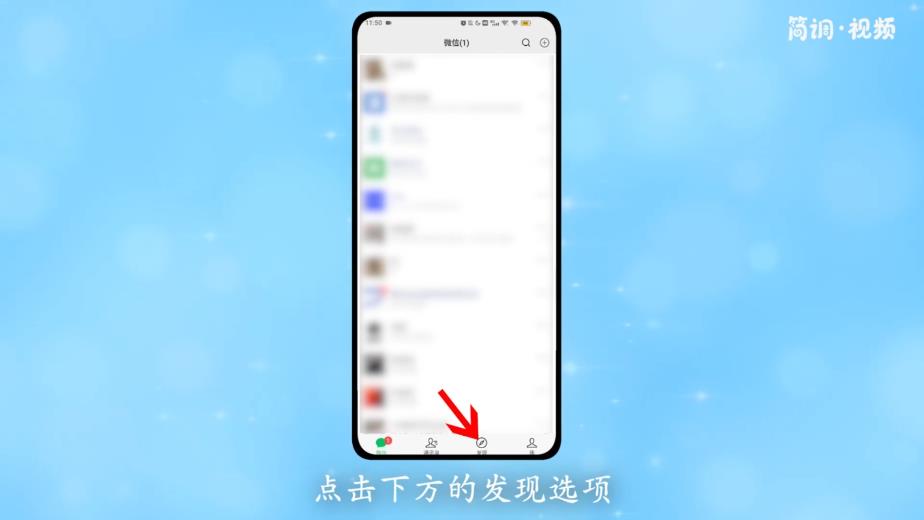 1.打开手机桌面的微信。进入微信后,点击下方的“发现”选项;