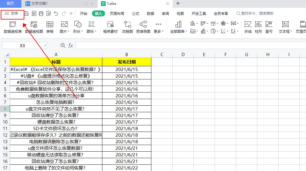 打开表格并点击文件。