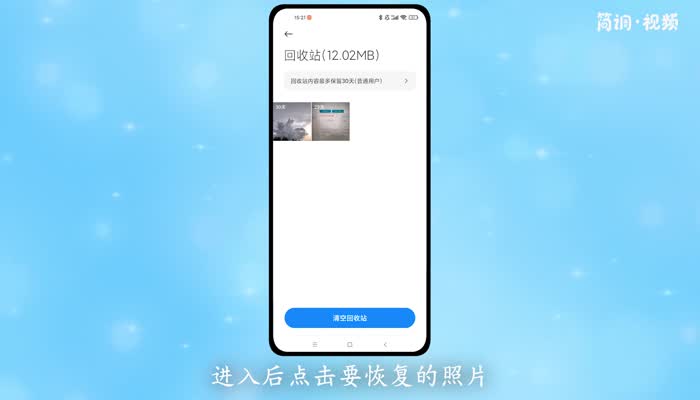 2.在相册页面点击“回收站”,进入后点击要还原的照片;