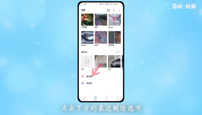 3.滑动屏幕,点击下面的“最近删除”选项;