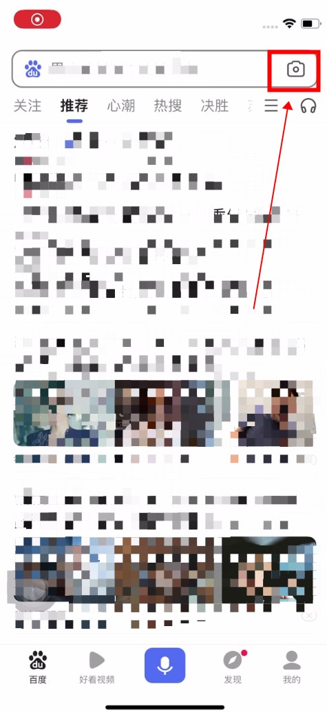 1.首先打开手机百度,点击搜索框后面的相机图标。