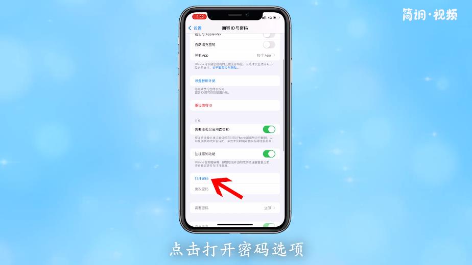 3.页面跳转后,滑动手机屏幕,点击“打开密码”选项;