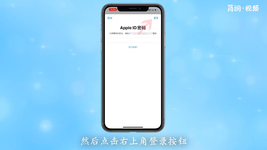5.页面上将出现一个新的弹出窗口。输入你的Apple ID密码,然后点击右上角的“登录”按钮。验证后,就可以成功设置了。