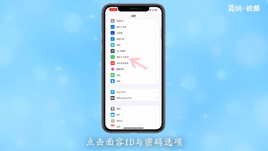 2.进入页面后,滑动手机屏幕,点击“Face ID和密码”选项;