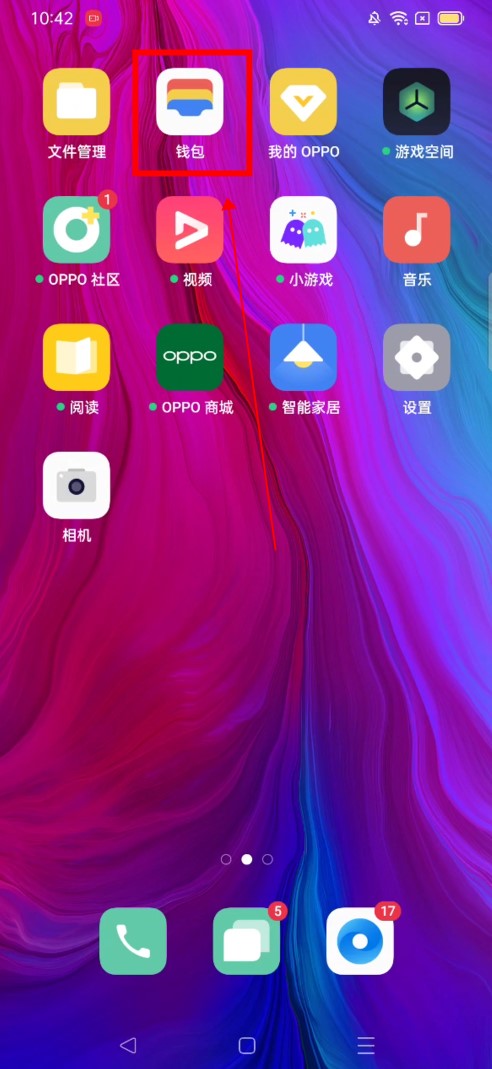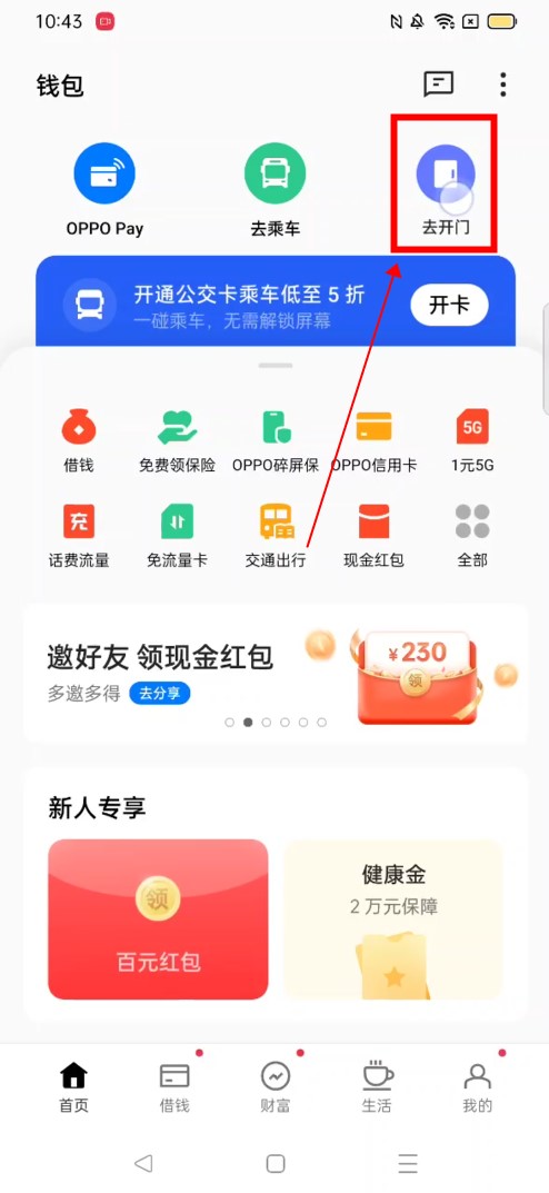 回到你的手机桌面,点击顶部的“钱包”。