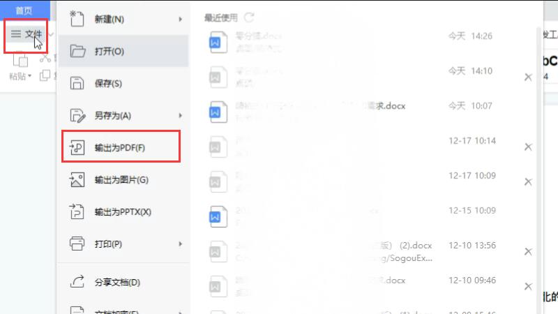 最后,在左上角的“文件”中选择“输出为PDF”选项。