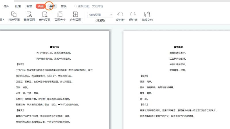 打开需要删除多余页面的PDF文件,点击菜单栏中的“页面”选项。