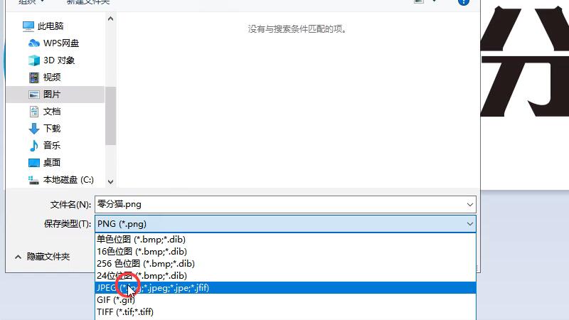 在弹出的窗口中,将保存类型更改为jpg,然后点击“保存”。
