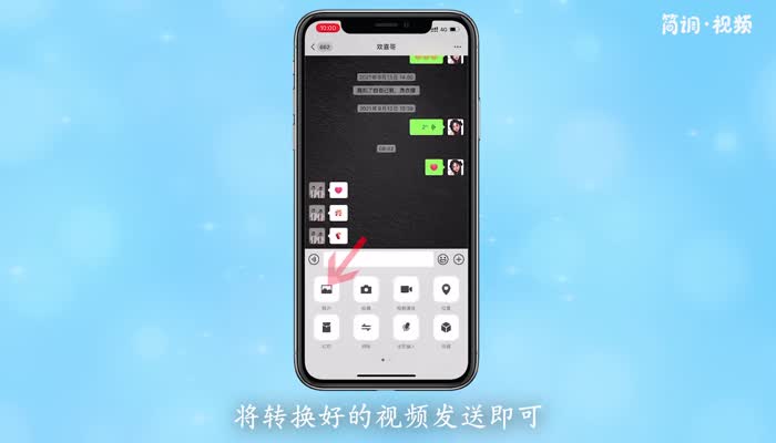 5.点击右下角的图标,选择“照片”选项发送转换后的视频。