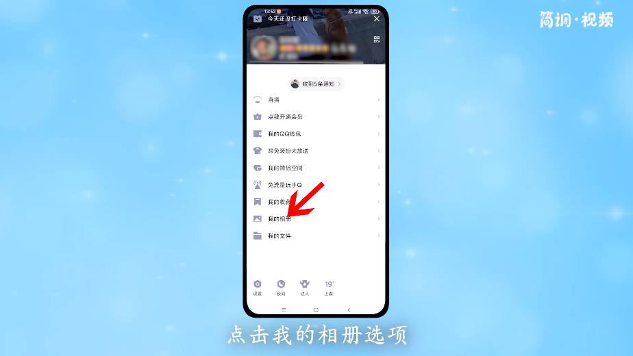 1.打开qq,向右滑动屏幕,点击“我的相册”选项,进入相册界面;