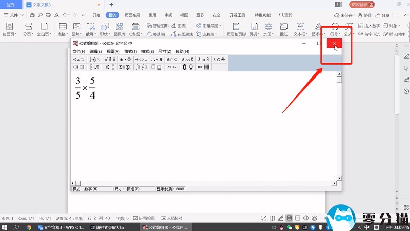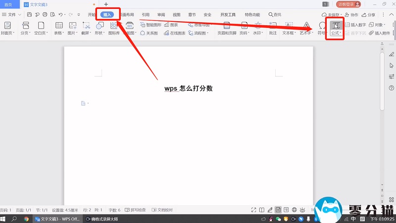 首先,打开一个文档,单击菜单栏下的插入,然后选择公式。